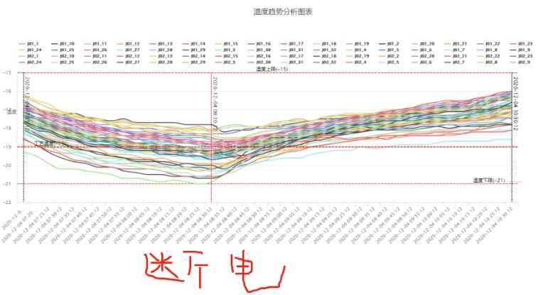 下图是断电保温验证的温度曲线,正常的曲线一般越到后,越出现二极分化, 上层布点的温度一般上升较快,下层的布点,温度一般上升慢。